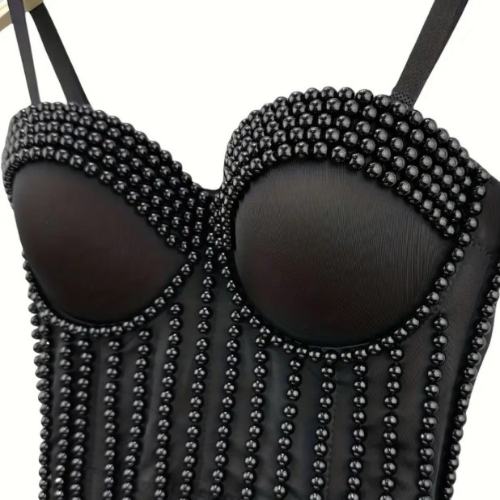 Black Body Shaping Corset with Pearl Embellishment