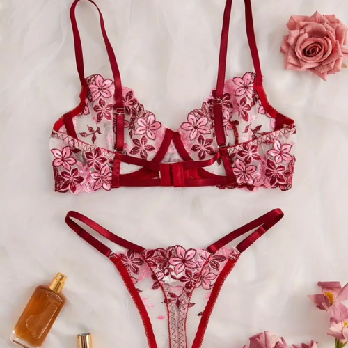 Matching Set: Includes coordinating bra and panty for a complete, polished look.