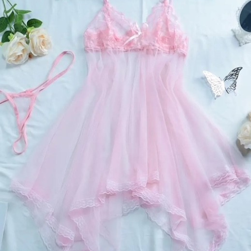 • Complete 3-Piece Set: Includes a lacey sheer dress, matching bra, and panty.