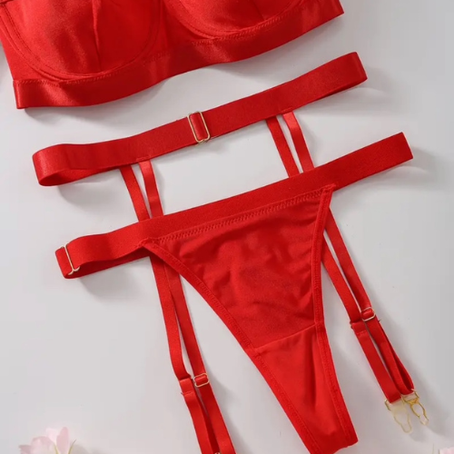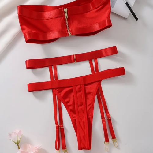Complete 3-Piece Set: Includes bra, panty, and zippered garter belt.