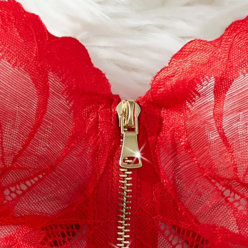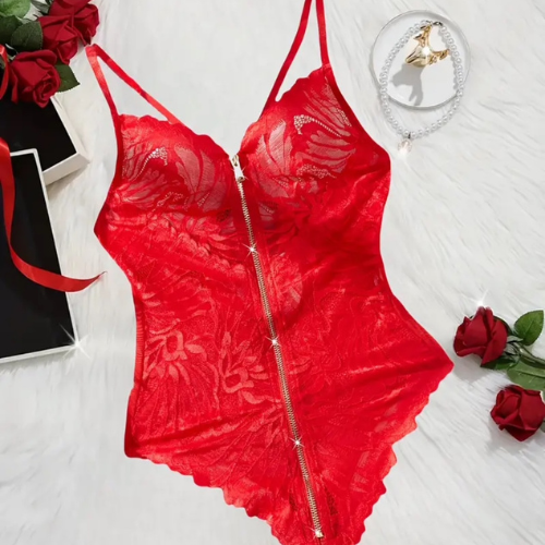 Fierce meets feminine in our Red Floral Lace Bodysuit with Zipper, a show-stopping piece designed for bold seduction and undeniable charm. Featuring intricate floral lace in a fiery red hue and a daring front zipper, this bodysuit lets you control the reveal—whether you zip it up for mystery or down for drama. It’s confidence, sexiness, and power all in one irresistible piece.