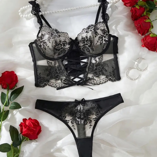 Delicate, daring, and beautifully detailed—our Transparent Embroidery Bra & Panty Set with Drop Waist Design is a work of intimate art. Featuring sheer mesh embroidered with elegant floral patterns and a unique drop waist panty for a fashion-forward twist, this set blends sophistication with sensuality in all the right ways. Light, breathable, and irresistibly flattering, it’s designed to make you feel like a masterpiece.